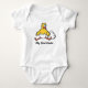 La primera Pascua del bebé, con un traje de huevo y un bebé de chicas. Ilustracion original de una chica de recién nacido naciendo de una cáscara de huevo justo a tiempo para la primera Pascua de su bebé! Personalizar una línea de texto o haz clic en personalizar para añadir más texto.