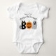 El traje de halloween "First Happy Halloween" es la forma perfecta de celebrar la primera Halloween de tu bebé. El diseño incluye la palabra "Boo" con las letras hechas de un gato negro, una calabaza y un fantasma. ¡Puede personalizar el texto como desee! ¡Este traje también es un gran regalo!