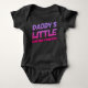 Este traje de bebé dice "El pequeño amigo de la caza de papá" en un tipo de letra morado a rosa que se desvanece.
