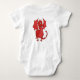 Un mono de la diversión para un niño o un niño, con una fila de los emblemas Galés, de un chica en el vestido tradicional galés, de un dragón rojo, de un manojo de puerros, de una arpa y de un manojo de narcisos. Hay también un dragón rojo lindo en la parte posterior y el diseño cabrá todos los tamaños de la camiseta.