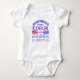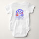 El traje de bebé muestra las banderas de los Estados Unidos de América y de Grecia. Lecturas, "Ensamblados en los EE.UU. usando piezas griegas". Vestir a bebé para reuniones familiares, festivales y celebraciones del Día de Oxi. Comparte tus herencias con un poco de humor.