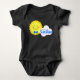 El traje de baño "You Are My Sunshine Happy Sun Baby Bodysuit", diseñado por Enchantelegante Design Company, presenta un sol sonriente que lleva una bonita corbata azul. El cielo azul, la hierba verde y una pequeña nube blanca unen la escena del verano. ¡Esta camisa alegre es un regalo perfecto para tu pequeño sol! Seguro que alegrará el día de cualquier niño.