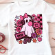 Este diseño de #ghostgirl combina la nostalgia del #aesthetic de los 90 con un encanto juguetón de Halloween. Un dulce fantasma que sopla burbujas de chicle lleva auriculares enormes y un lazo, rodeado de estrellas de #floralart, acentos de tablero de ajedrez y favoritos retro como una cinta de #mixtape y una cara sonriente. Es una mezcla perfecta de espeluznante y lindo.