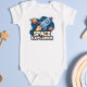Este bodysuit de bebé cuenta con una insignia de explorador espacial audaz y vibrante. Un cohete de dibujos animados divertido vuela a través del espacio con planetas alrededor.