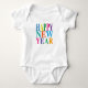 Celebra el Año Nuevo con tu familia y amigos con este diseño colorido y lindo, que incluye un texto grande que dice "feliz año nuevo" con letras en azul, naranja, verde, amarillo, fucsia, agua y color púrpura.