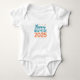 Feliz año nuevo traje de bebé con una fuente colorida.