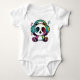 Body Para Bebé Feliz Panda con auriculares escuchando música.