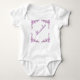 Una rama de hermosas flores de cerezo rosadas sobre un fondo rosa adorna las esquinas de este bodysuit de bebé.