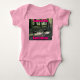 Este traje de bebé presenta a una niña pequeña con sus crías de abono negro y moreno que caminan por el bosque y las palabras Futuro Cazador de Cuernos.