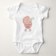 Este mono adorable tiene a una preciosa bebé sentada en un caprichoso cochecito rosa con volantes y corazones. "G es de Girl" está escrito en el cochecito.