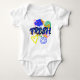 Este traje de bebé al estilo del grafiti incluye la palabra "fresco" en su diseño, junto con tres corazones, un arco iris y una bandeja de pintura. Este es un diseño de bebé único y divertido. Puede añadir las iniciales de su bebé fresco a la parte posterior.