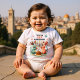 Your little one’s first Hanukkah deserves a look that’s as sweet as sufganiyot and twice as photogenic. This festive baby outfit stars two adorable bunnies flanking a fully lit menorah, surrounded by jelly donuts, fluttering butterflies, and enough sparkle to make the whole mishpacha melt.