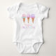 Este adorable bodysuit incluye un camión de helados color agua pintado a mano con helados y globos en colores pastel.