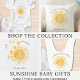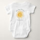 Este adorable bodysuit de bebé está decorado con un sol sonriente amarillo y "Here Comes The Sun" en tipografía de letra estilosa. Es fácilmente personalizable. Acuarela Original © Michele Davies.