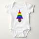 Este lindo traje de bebé presenta un árbol de Navidad con arco iris con dos pequeños símbolos masculinos azules sentados encima del árbol. Cada capa del árbol es un color diferente del arcoiris. El árbol se sienta en una olla marrón. Un diseño encantador para parejas homosexuales este Navidad.