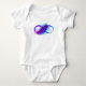 Símbolo de infinito con una hermosa pluma pintada en colores brillantes púrpura y azul sobre fondo blanco.
