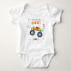 Joven Salvaje Y Uno Cumpleaños 1º Niños Camioneta de Coche Monstruo Body para Bebé presenta un camión de coche monstruo colorido y lindo con el texto "Joven, salvaje y uno" en tipografía moderna acentuada con el número 1 y garabatos. Abajo personaliza con tu nombre personalizado. Perfecto para las celebraciones del primer cumpleaños del bebé. Diseñado por Evco Studio. Para artículos coordinados, visite www.zazzle.com/store/evcostudio