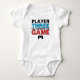 Famoso traje de jugador de bebés. Leer texto azul, negro y rojo El tercer jugador ha entrado en el juego con un controlador negro debajo del texto.