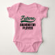 Camiseta del bebé o del niño del jugador del bádminton (futuro) con un diseño futuro colorido del jugador del bádminton.