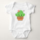 Cactus adorables de color verde bebé con una linda cara sonriente kawaii, una flor rosa y amarilla y un corazón de amor rosado dentro de una burbuja de habla. Él está sentado en una maceta florida con los brazos afuera por abrazos. Una plantilla dentro del maceta de flores para añadir tu nombre a personalizar.