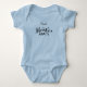 Aventura espera traje de bebé neutro de género personalizado. Tipografía negra en traje corporal azul claro. Perfecto para una futura madre, un bebé recién nacido, un regalo de ducha de bebé, etc. Haga clic en el botón "personalizar" para agregar su nombre,