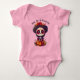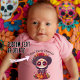 Este bodysuit rosa para bebé es un dulce y festivo tributo al Día de Muertos, que presenta una adorable La Catrina de estilo kawaii. El suave fondo rosa proporciona un lienzo encantador para el diseño vibrante y juguetón, lo que lo convierte en una elección encantadora para celebrar esta tradición especial.