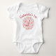 Celebra a los primeros Navidades de tu bebé con estilo vistiéndola en este adorable traje de Navidad de primer bebé. Esta bonita pieza presenta una forma de círculo botánico de moda en bonito y colores suaves de rosa, púrpura y verde. Personalice esta camisa de Navidad para la primera Navidad del bebé con el nombre de su hijo.