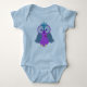 Este adorable traje de cuerpo azul tiene un búho paisley morado y azul. Disponible en trajes de maleta azul, rosa o blanco, y también en camisetas.