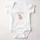 Traje de bebé personalizado de dinosaurio marrón dulce. Simplemente adorable para 0-24 meses. Este adorable patrón se puede usar para niño o niña. Este pequeño dinosaurio es muy lindo y tu bebé se verá muy lindo. Y, la personalización en la parte posterior lo hace aún más especial. Qué dulce adición al guardarropa de tu bebé. Asegúrate de ver todos nuestros artículos de dinosaurios para bebés. Recuerda que este patrón se puede transferir a cualquier artículo de Zazzle para completar tus necesidades de decoración.