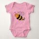 Un amarillo grande y un negro manosean la abeja con una sonrisa y pequeños corazones en las mejillas.