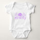 Diseño púrpura del bebé del estilo de la yoga. SERENIDAD en fuente de mirada sánscrita con diseño floral y la flor de loto. Por www.YogaGlam.com