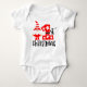 Mi bodysuit de Navidad 1er cumpleaños presenta un lindo gnomo Santa Claus con el número uno vestido con un traje de Santa decorado con estrellas. El texto "Mi 1er Navidad" está en tipografía de caligrafía manuscrita roja y negra. Perfecto para bebé en Navidad, baby showers o regalos de vacaciones. Diseñado por ©Evco Holidays www.zazzle.com/store/evcoholidays