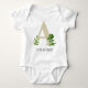 Traje de bebé adorable con la letra A y un cocodrilo bebé lindo. Ilustrado y diseñado por Patricia Alvarez.