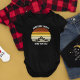 Esta fresca puesta de sol de época naranja sobre montañas rocosas en la naturaleza es una gran imagen para un lindo traje de bebé para una reunión familiar, un viaje por carretera o unas vacaciones de verano. Conmemorar su semana de vacaciones con té a juego para sus hijos. Sólo tienes que añadir tu propio apellido y el año con nuestra herramienta de personalización.