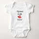 My Auntie loves me! Personalized baby bodysuit with heart design. Show off the sweet connection between baby and aunt with this lovable custom baby bodysuit. Featuring the heartfelt message “My Auntie (Name) Loves Me” alongside two intertwined hearts, it’s a cute way to celebrate family love. Whether you're welcoming a new baby into the world or marking a special milestone like a first birthday, this unisex bodysuit makes a personal gift from a proud auntie. Easily customizable: Add your auntie’s name or switch it up to say Mummy, Daddy, Nana, Uncle, or any special person in baby’s life. A wonderful gift idea from an aunt to her favorite little one - or from baby to auntie as a sweet surprise! Designed by Best Baby Gifts - given with love.