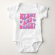Navidad Alegre y Brillante Retro Groovy Festivo Moderno Bodysuits para bebé presenta el texto "Alegre y Brillante" en tipografía moderna de letra manuscrita rosa y púrpura y acentuado con estrellas y flores. Perfecto para la primera Navidad del bebé, baby shower o regalo para las fiestas. Diseñado por ©Evco Holidays www.zazzle.com/store/evcoholidays
