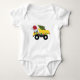 Un lindo ilustracion de un camión de Navidades con sombrero de Papá Noel y decorado con luces de Navidad que transportan un árbol de Navidad festivo. Perfecto para niños y chicas que aman los camiones de construcción, los camiones de juguete o la maquinaria pesada. Un traje de bebé ideal para Navidades para los amantes de los camiones grandes o pequeños, chicas o niños.