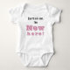 Diseñar funciones con texto de personalizable completo, "No me preguntes. Estoy en negro. Las palabras "¡Nuevo aquí!" se muestran en una fuente grande y rosa. Todo el texto es personalizable. Diseñado como parte de la colección de camisas Toddlers/Baby.