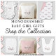Este bodysuit para bebé niña presenta un elegante monograma y nombre en negro y rosa claro. Fácilmente personalizable.