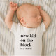 Bienvenido a un pequeño con un toque especial — este bodysuit personalizado con el nombre del bebé es la forma perfecta de celebrar a una familia en crecimiento. Este babero personalizado presenta el nombre del bebé y el divertido eslogan "nuevo niño en el barrio" impreso en un diseño limpio y moderno. Ideal como regalo para una fiesta de bebé, un conjunto para anunciar el nacimiento de un recién nacido, o un recuerdo para atesorar durante años.