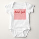 Este bodysuit para bebé tiene un diseño Art Deco de líneas curvas de salmón en forma de triángulo sobre un fondo blanco que se repite en todo el diseño.