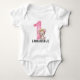 Body de oso de peluche coronado con purpurina rosa personalizado para bebé con número 1 gigante para niñas de un año.