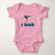 ¡Este traje de bebé tiene un diseño de texto brillante y brillante para los boxeadores chicas! El texto 'pateo' y la mujer kickboxer haciendo una patada es el color de las chispas turquesa o aqua brillando como purpurina. No hay ningún purpurina real, solo se ve así. Hay muchos otros estilos y colores para elegir. Diseñado por Glove On. Imagen220