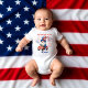Celebrate Independence Day in style with this adorable Patriotic Gnome shirt, featuring a cute gnome driving a red, white, and blue car in a cozy knit-style textured design. Perfect for 4th of July outfits, this design is ideal for family matching shirts, for the baby´s first 4th of July celebration. Easily customize the baby´s name
