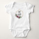 Este precioso bodi para bebé niña tiene un doble marco de alambre dorado con un ramo floral de margaritas moradas pintadas en acuarela. Dentro de la tipografía dice "pequeña SEÑORITA Sassy PANTS" en letra cursiva y una fuente regular. Puedes cambiar las fuentes si lo deseas entrando en "personalizar esta plantilla" y luego en "personalizar más".