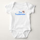 Cute Funny Tiny Troublemaker Baby Bodysuit Este mono y divertido traje de cuerpo presenta una tipografía moderna "Tiny Troublemaker" de azul con un bebé usando gafas de sol. Perfecto para bebés, recién nacidos o duchas para bebés.