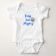 Cuerpo de bebé divertido y lindo con tipografía moderna 'Pequeño pero poderoso' en azul. Perfecto para bebés, regalo para baby shower o recién nacido.