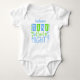 Traje personalizado del cuerpo de un niño pequeño con la expresión "Pequeño pero poderoso" en un divertido diseño azul y verde con letras en bloque y corazones. Puedes personalizar fácilmente con su nombre. Un regalo divertido para las duchas de bebés, los recién nacidos y las nuevas madres.