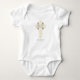 Esta cruz crema se distingue por el fondo gris plateado. El diseño de puntos en la cruz y en el fondo crea un aspecto de bebé de bonito suizo. Este regalo, recuerdo, obsequio o fiesta es esencial para felicitar a los padres por la sagrada dedicación de su bebé.