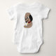 Traje de bodysuit personalizado con diseño con un ilustracion de un lindo cachorro marrón con un hueso; ilustrado por Radka Kavalcova / MaxiHarmony